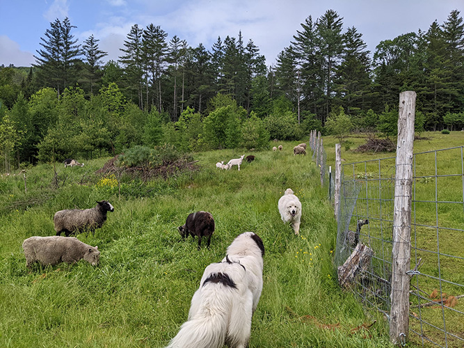Located in West Topsham, VT. We raise purebred Babydoll Southdowns and a mixed flock of meat sheep. We also raise a meat flock of goats. We use a Boer buck on dairy cross does. We have the one buck and ten does year round. And then we raise bottle baby bucklings through the summer for harvest in the fall. We also have three of alpacas that we use for fiber.