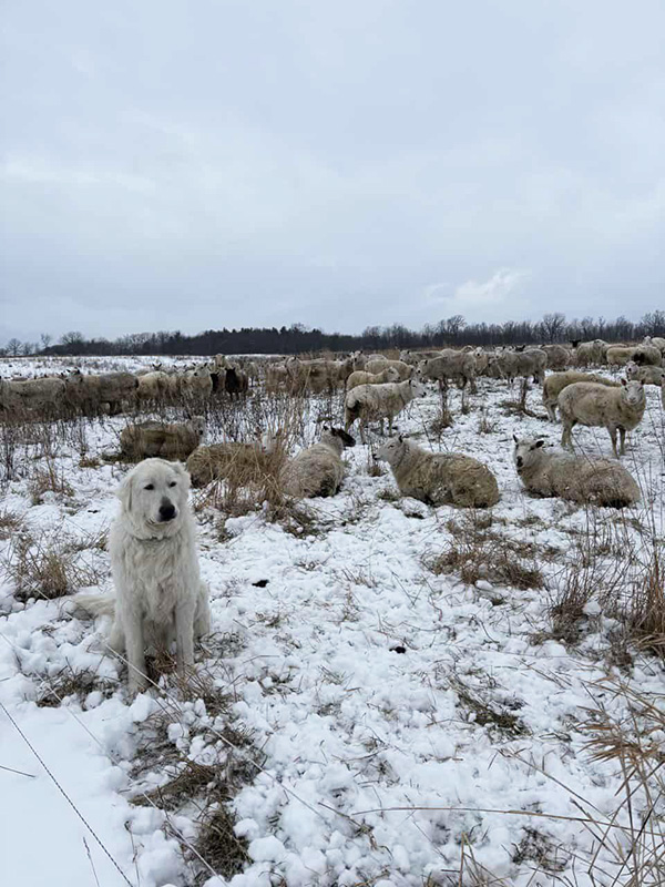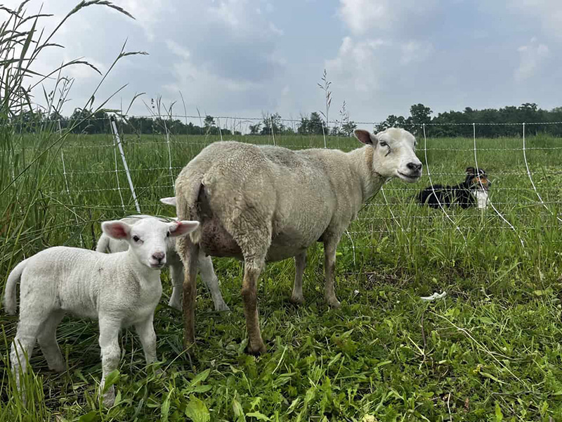 Our flock of grade Cheviots is shepherded with as extensive and low-input systems as possible. The flock is kept on pasture year-round (grazing about 250+ days/year and bale grazing the rest) including during lambing with a loose form of adaptive multi-paddock grazing. Health and hardiness of sheep and land is critical to our beliefs surrounding proper management of resources, putting greater emphasis on prevention than treatment of disease. Less than 5% of our flock requires deworming over the course of the year with many individuals having never received anthelmintic in their lifetime. Our flock is free of foot rot and requires no regular hoof trimming under our management. We aim to develop a stabilized composite that requires no tail docking, can lamb on pasture, and produce a medium-grade fleece.