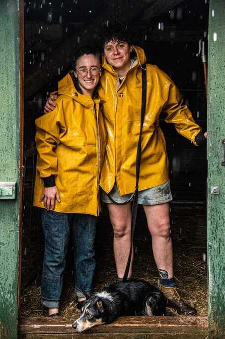 The sheep and poultry are protected by our livestock guardian dogs Guiseppe Seppeloneous The Great (AKA Seppe) and Mr. Rocky-James who live and protect them on pasture and around the barn by watching out and singing their songs through barks. We also herd the sheep with our border collie, Lola Beans, who joined our family in 2024 through the breeding of Beverly Lambert.